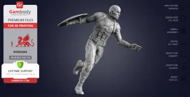 Steven Grant Rogers is a super-soldier, a veteran of World War II and the world's first superhero better known as Captain America. As a result of a top-secret program known as the Project: Rebirth program the frail young man, Steve Rogers was transformed into a powerful soldier with superhuman capabilities. Having performed many feats during the war, Captain America sacrificed himself by sinking the plane full of weapons of mass destruction in the Arctic Ocean. That is where Steve Rogers was discovered frozen in ice by S.H.I.E.L.D. after nearly 70 years. Captain America awoke in present-day New York and having barely adjusted to the modern era became a part of the Avengers Initiative activated by Nick Fury. Cap’s appearance did undergo certain changes throughout the Marvel Cinematic Universe development but there are some things that always remain unchanged and that the author of this 3D printing figurine skilfully depicted. Captain America is portrayed as if in the middle of the battle in his streamline uniform with stars and stripes motif, wielding circular shield made of vibranium and selflessly fighting for peace and justice. Steve Rogers’ infinite courage, righteousness and honest spirit hugely contributed to the whole team’s success and fortunately proved Cap worthy of his own happy endgame.