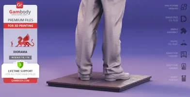 Chandler Bing figurine for 3D printing is a static assembly model and its moderation and adaptation for different types of 3D printers took Gambody team 35 hours in total. Figurine’s anatomy was thoroughly reviewed during the moderation process for the sarcastic friend to be depicted harmoniously in his casual baggy outfit and relaxed pose. The model’s cutting was chosen by our team to minimise the amount of filament needed for generated support and some of the parts were hollowed out for you to save resin in the figurine’s Eco version. In order to conceal the places where the assembly parts of the model must be connected, the figurine was cut along the contour of Chandler’s clothes seams. For you to achieve the cleanest 3D printed result, the figurine’s head and shoes were carefully extracted, while the model was also fully separated from its simple platform. All the assembly parts come in STL files in recommended positions that were worked out in order to ensure the smoothness of the details’ surfaces after printing and so that the 3D printing beginners won't face difficulties when placing the parts on a build plate. When downloading any figurine's file you will also receive "Assembly Manual" for FFF/FDM 1.0 and DLP/SLA 1.0 versions in PDF format.