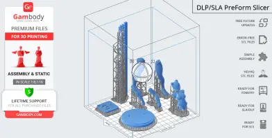 DLP/SLA 1.0 version features:- Contains 6 parts;- A printed model is 116 mm tall, 60 mm wide, 59 mm deep;- All parts are divided in such a way to fit the build plates and to ensure that support structures are generated where needed.
