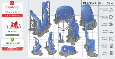 - STL files of high-poly Cyberpunk Diorama for 3D Printing consist of 106 parts