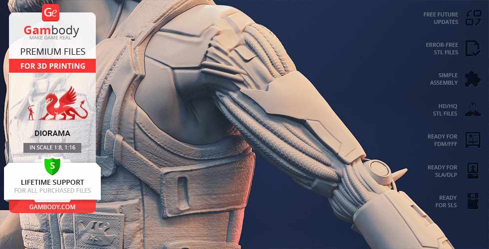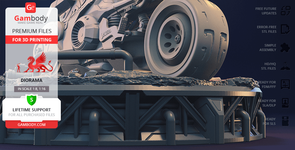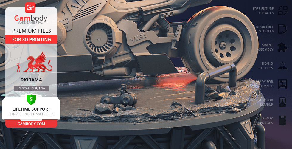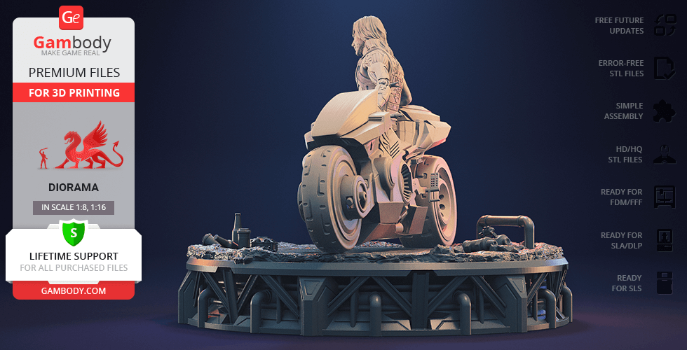 Watch the tutorial on how to assemble Cyberpunk Diorama for 3D Printing at Gambody YouTube channel.