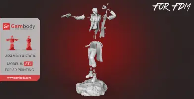 Dante is the character of the famous game. He is rather frivolous, but never deviates from his positions. He never shows fear and is unperturbed. It can only be serious when the situation requires it. He likes to joke and mock. Because of this, he may seem a callous or even an indifferent character, but in fact, he has a very strong sense of justice because of which he always prefers to fight honestly. For Dante, family and friends are very important. He cared for his mother and, despite disagreements with his brother, always worried about him. In battle, he prefers to give his best not in full force so that everything lasts much longer and is more interesting otherwise he will be bored. Despite the fact that Dante is on the side of people, he rarely takes up the work that poor clients are asked to perform. In fact, Dante, as a rule, refuses any work that he does not like, no matter how much they pay for it. But immediately takes on the work associated with the demons, no matter whether it will be paid or not. But in general, he is not lucky in life. But despite this, he loves to play gambling. In the veins of Dante, there flows the blood of the Legendary Dark Knight of Spard, due to which he possesses enormous power. All these features make this character incredibly interesting both in the game and in the form of a printed model.