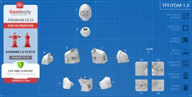 FFF/FDM 1.0 version features:- Contains 14 parts;- A printed model is 325 mm tall, 437 mm wide, 301 mm deep;- Assembly kit includes lock 14_ge_lock_10H(x46) to connect parts of the bust securely without glue that needs to be printed 46 times;- All parts are divided in such a way that you will print them with the smallest number of support structures.