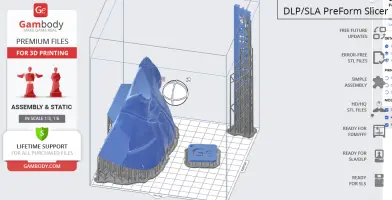 DLP/SLA 1.0 version features:- Contains 10 parts;- A printed model is 163 mm tall, 218 mm wide, 150 mm deep;- All parts are divided in such a way to fit the build plates and to ensure that support structures are generated where needed.