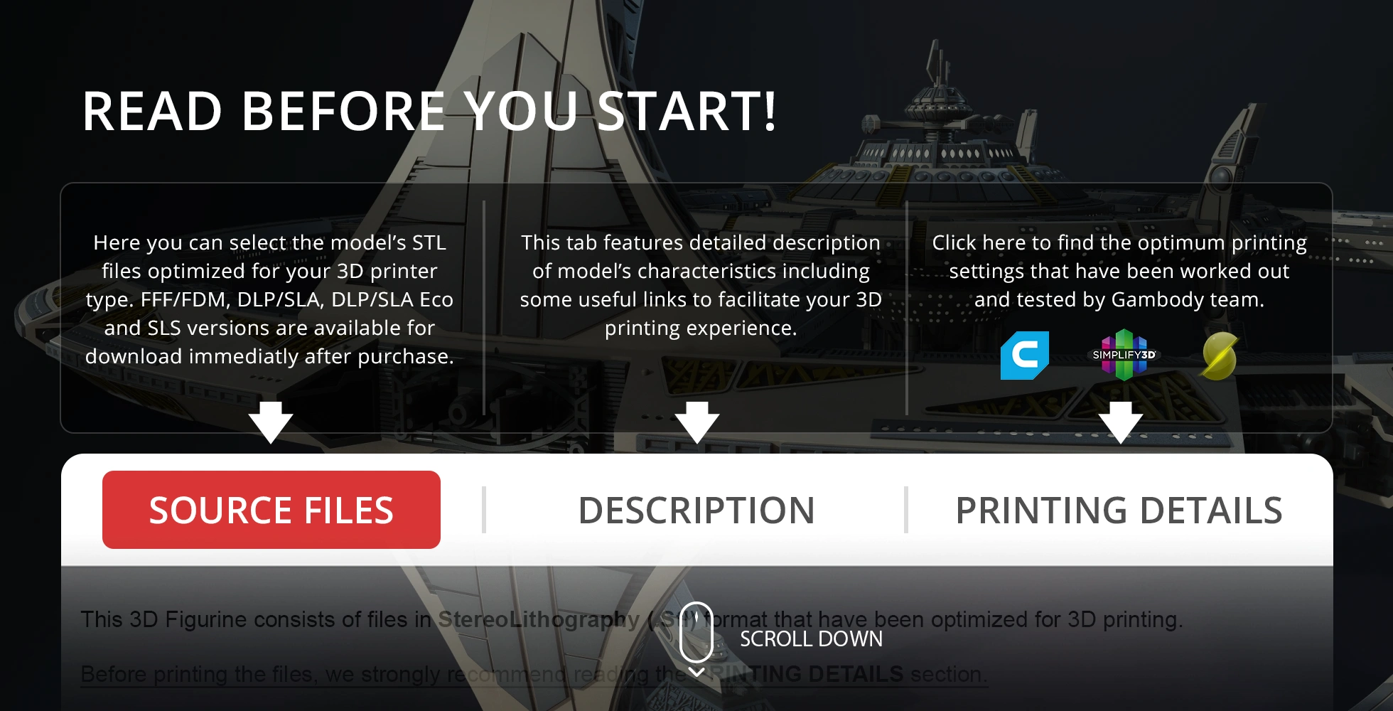 You can get the STL files of Deep Space 9 for 3D printing immediately after the purchase! Just click the green Buy button in the top-right corner of the model’s page. You can pay with PayPal or your credit card.