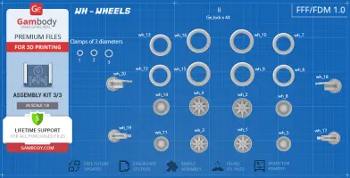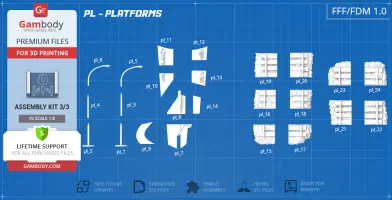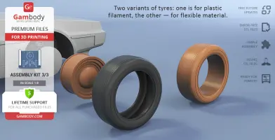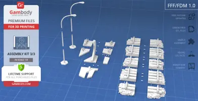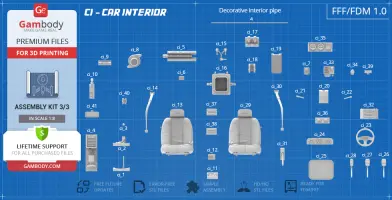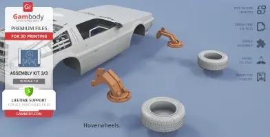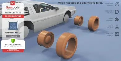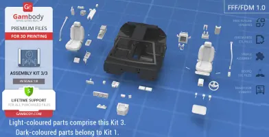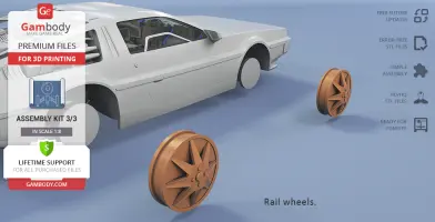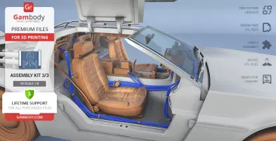 DeLorean 3D Printing Model | Assembly Kit 3: Car Interior, Wheels and Platforms comes in 1 version for FFF/FDM 3D printers. Files are available for download immediately after the purchase.