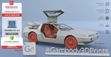 Watch the assembly video for DeLorean 3D Printing Model | Assembly Kit 3: Car Interior, Wheels and Platforms, and explore more tutorials, behind-the-scenes content, 3D printing timelapses, and painting guides on the official Gambody YouTube channel.