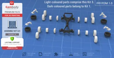 - Assembly Kit 3 that consists of car interior, alternative wheels, platforms;
