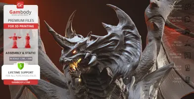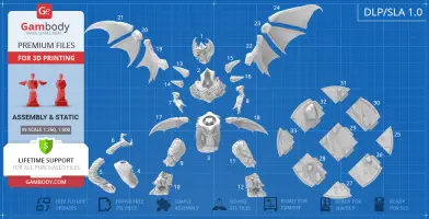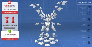 Watch the tutorial on how to assemble the 3D Printed Destoroyah model from the provided 3D Print Files on Gambody YouTube channel.