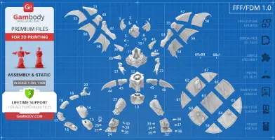 - The assembly parts in the FFF/FDM version come in the recommended print orientations for easy bed placement;