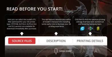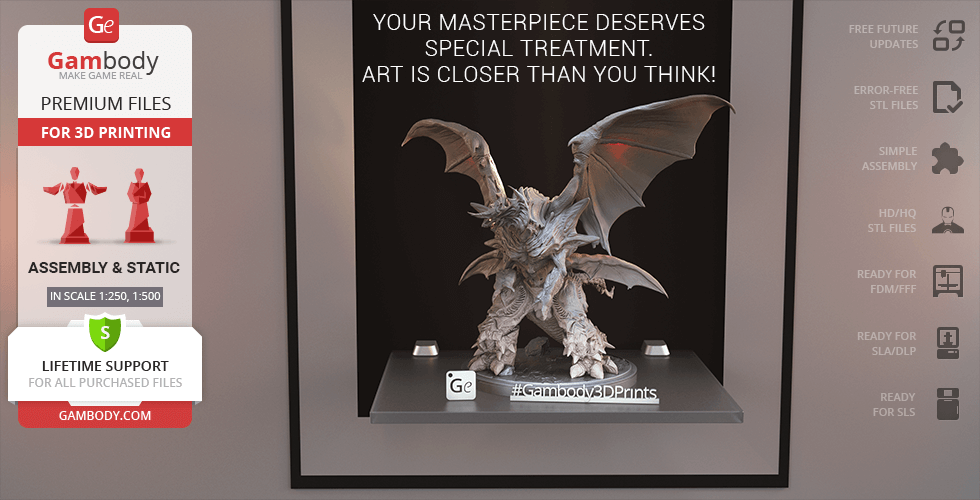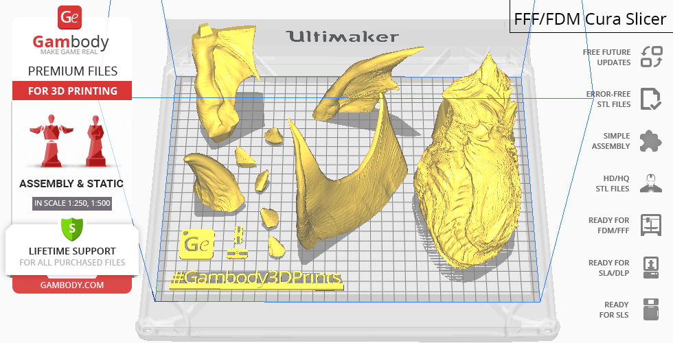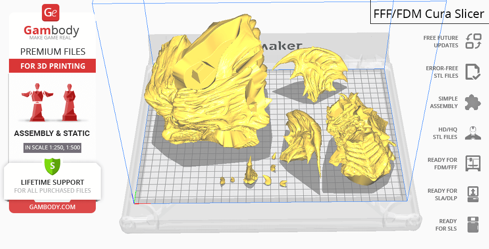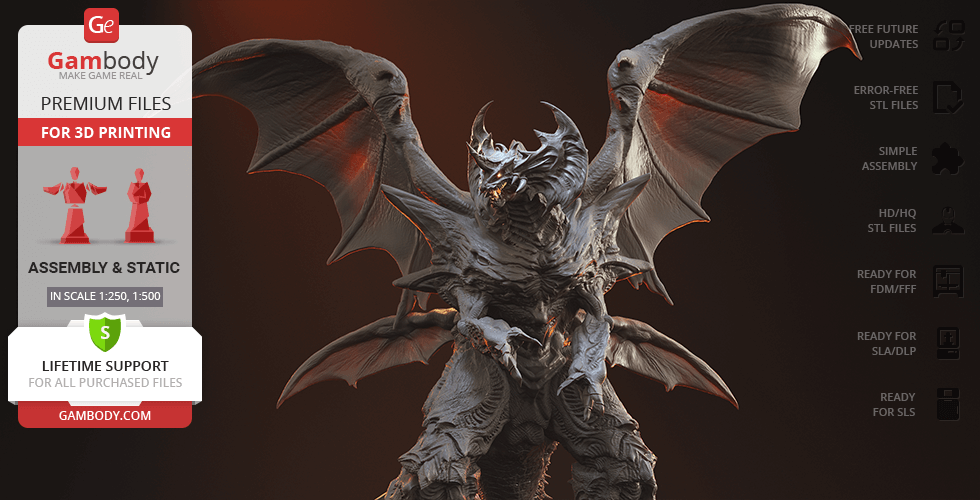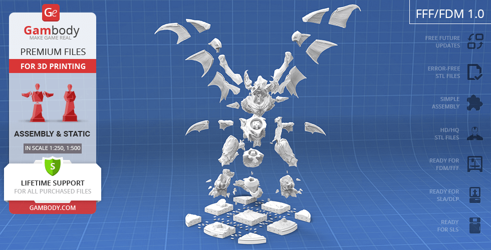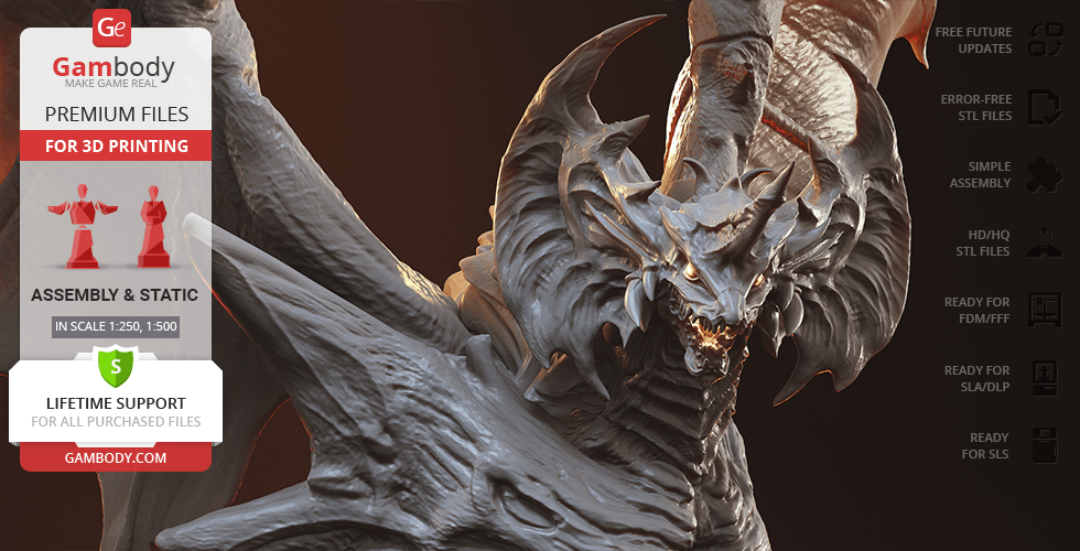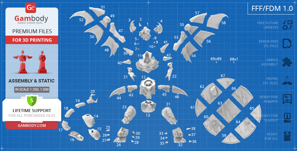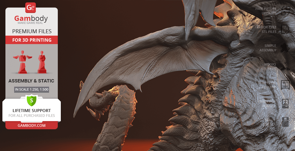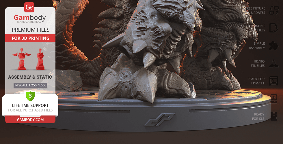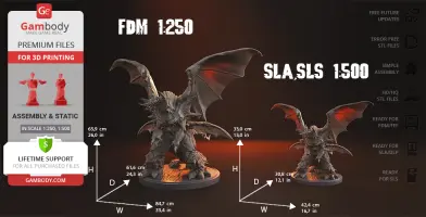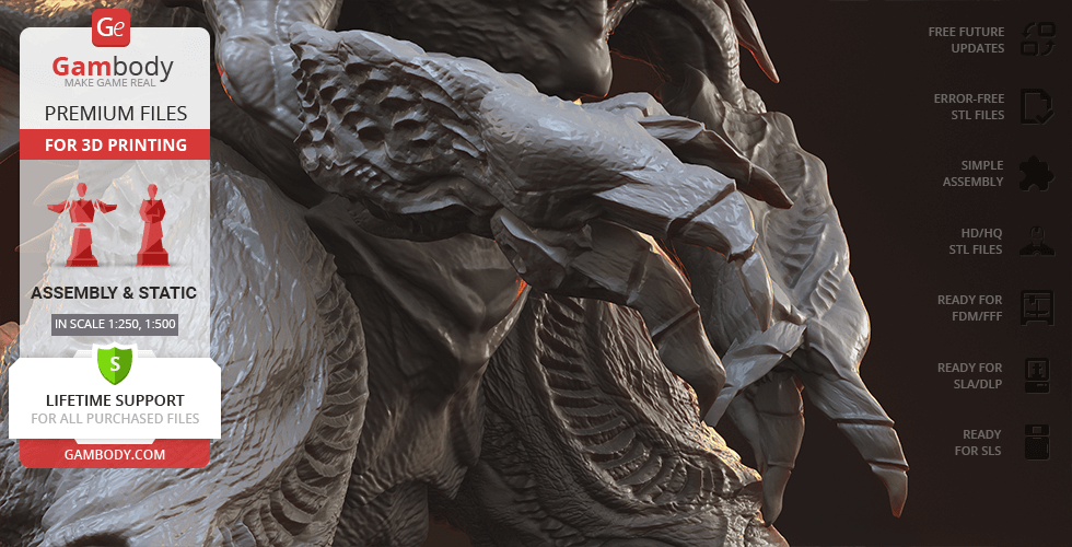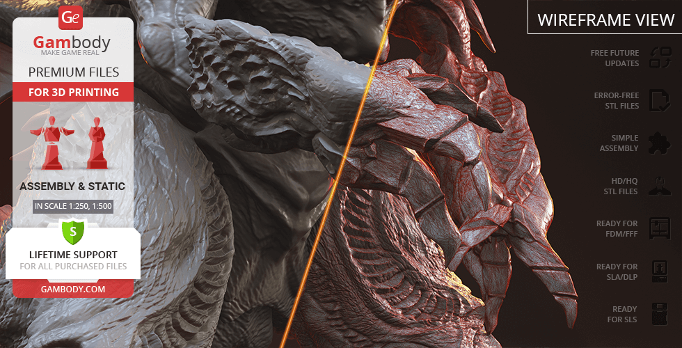 - The model is available in recommended scales of 1:250 for the FFF/FDM version and 1:500 for the DLP/SLA/SLS versions, based on the height of Destoroyah (120000 mm).
