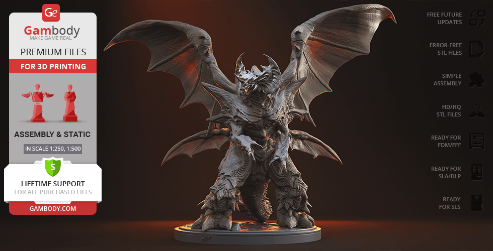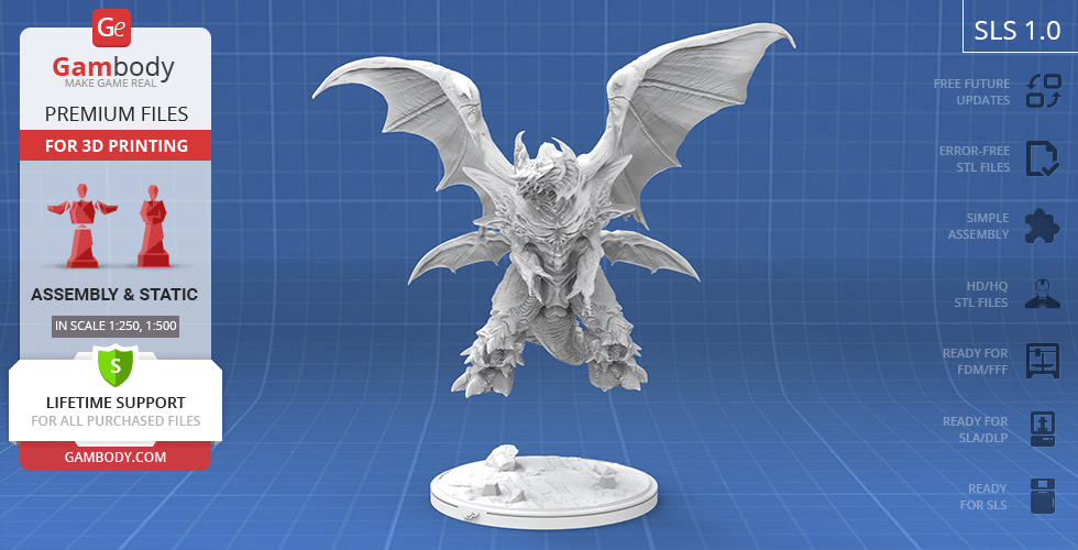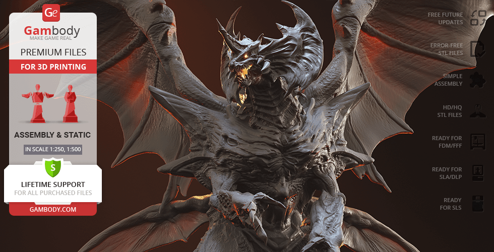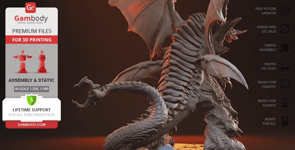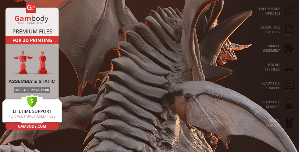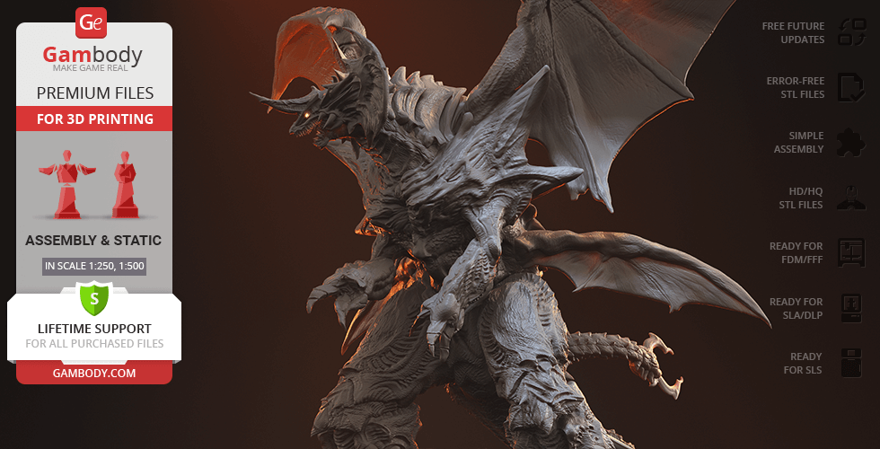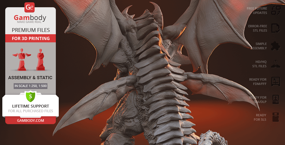 - 4 versions of Destoroyah STL files for FFF/FDM, DLP/SLA, DLP/SLA Eco, and SLS — files for all versions are available for download after the purchase;