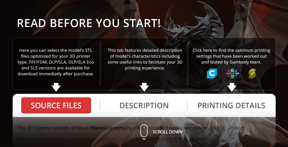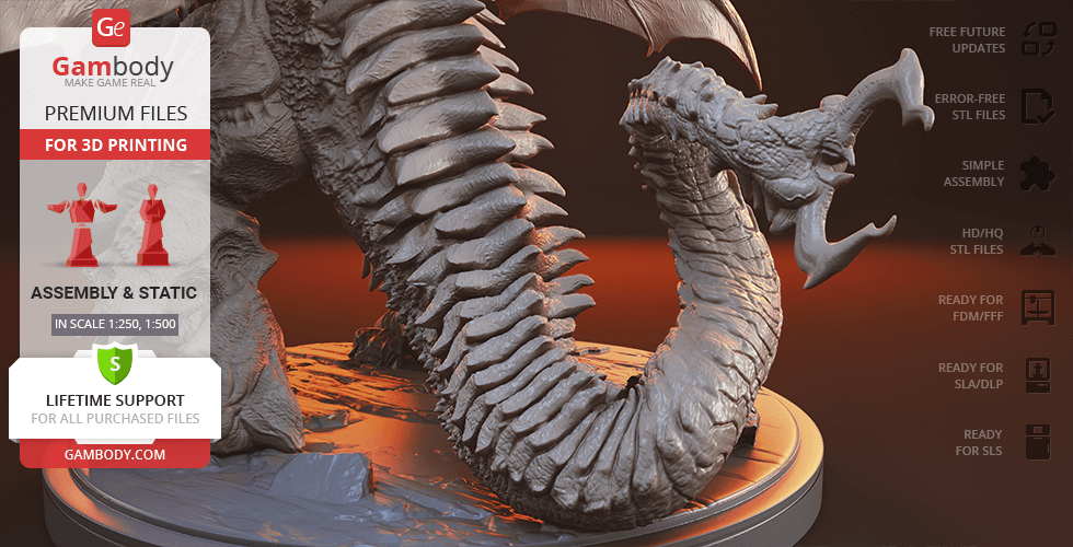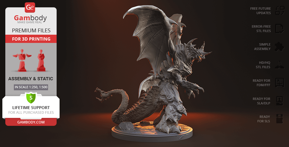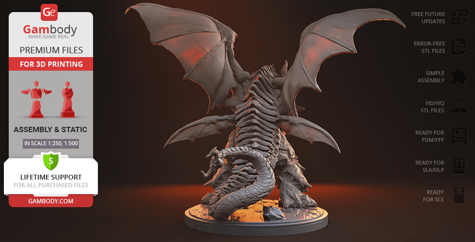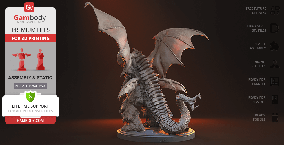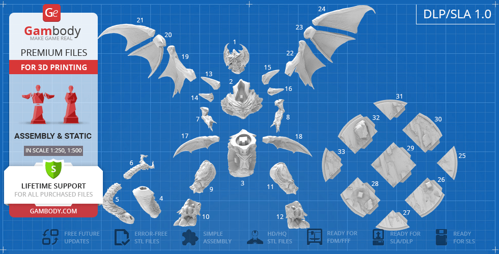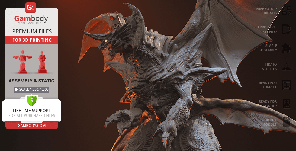 - 4 versions of Destoroyah STL files for FFF/FDM, DLP/SLA, DLP/SLA Eco, and SLS — files for all versions are available for download after the purchase;