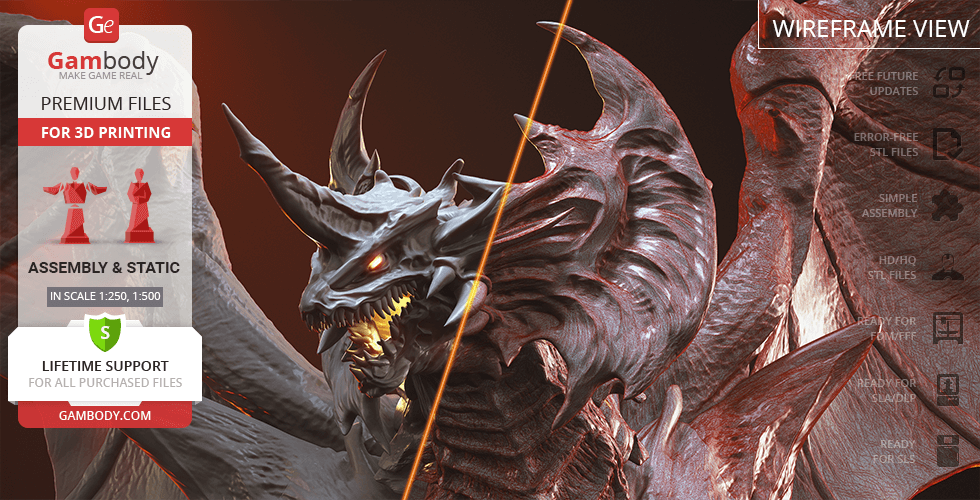 Destoroyah 3D Printer Files | Assembly includes 3 version(s) for the supported 3D printer type(s): FFF/FDM, DLP/SLA, SLS. Files are available for download after purchase.