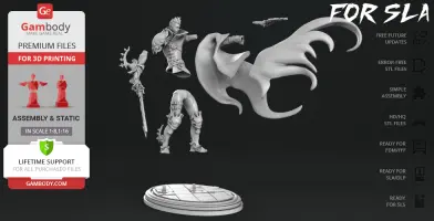 - STL files of Devil Hunter 3D Model for 3D printing which consist of 42 parts;- 4 versions of files for this model for FFF/FDM, DLP/SLA, DLP/SLA Eco and SLS;- High-poly detailed figurine of Devil Hunter;- Detailed settings that we provide for Cura , Simplify3D and Slic3r for the best print;- Full technical support from the Gambody Support Team.