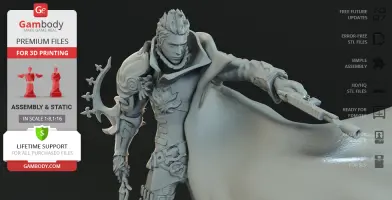 Scale: Devil Hunter actual height is 1900 mm. The model’s chosen scale is 1/8 for the FDM version and 1/16 for the DLP/SLA/SLS version.