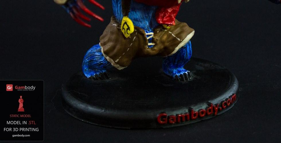 This model showcases all these ferocious traits of the videogame character. Our 3D designers created a close reproduction of the character in line with the game graphics but with personal touches.