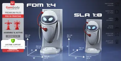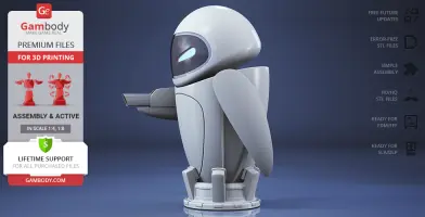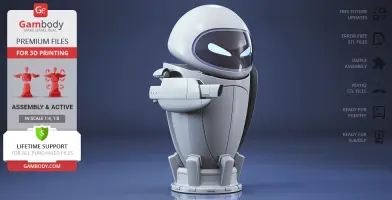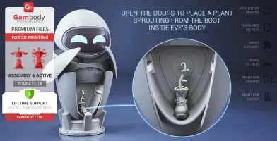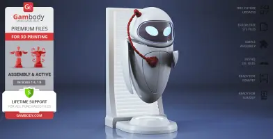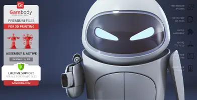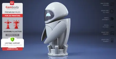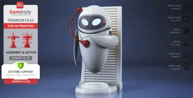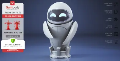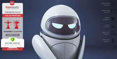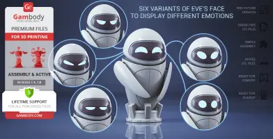 The beautiful EVE model for 3D printing is designed with six interchangeable face variants and several articulated mechanisms for your delicate probe droid to express any emotion you prefer. WALL-E is finally no longer lonely in Gambody’s catalogue, and so should the WALL-E in your 3D printed collection be!