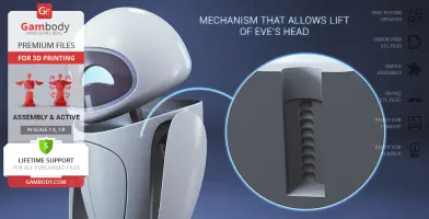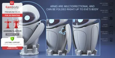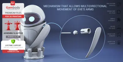 EVE for 3D printing is an active assembly model and its moderation and adaptation for different types of 3D printers took the Gambody team 40 hours in total.