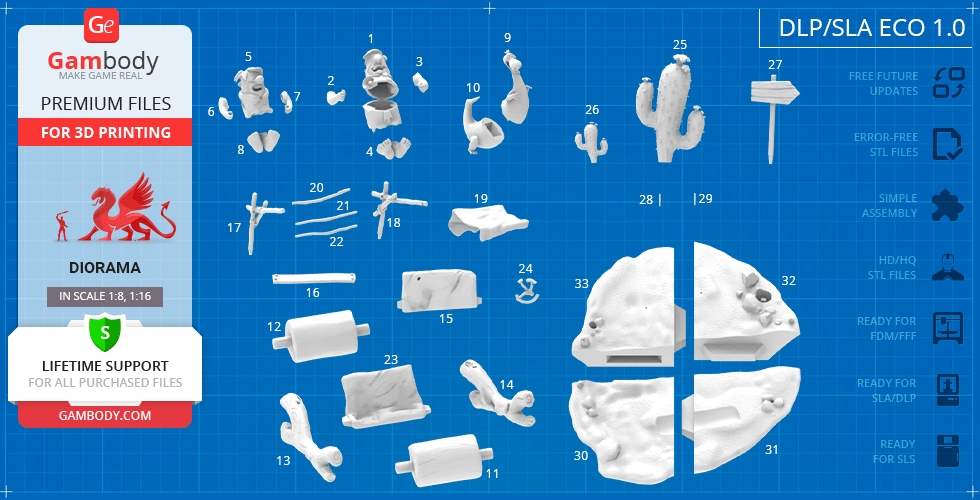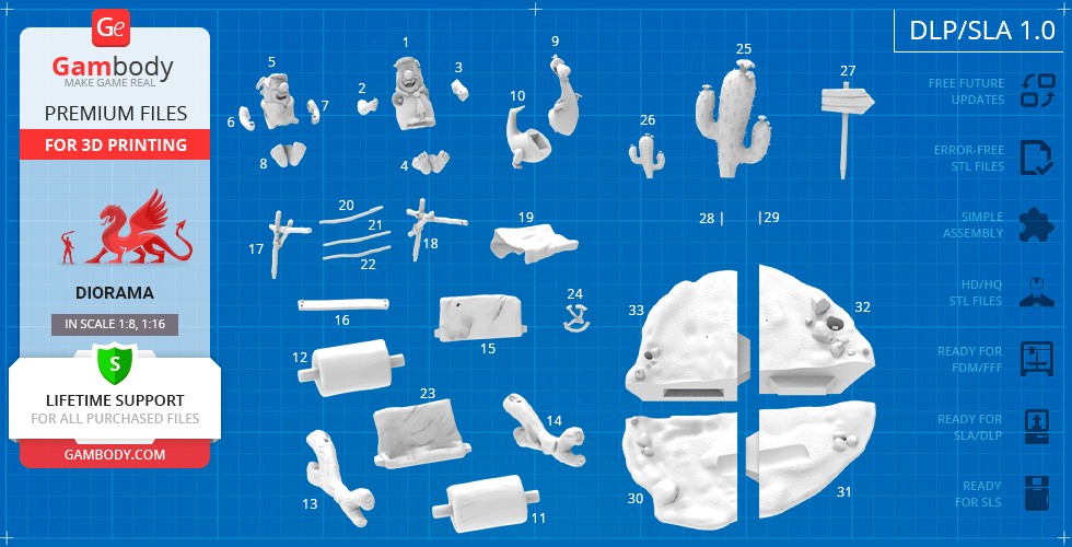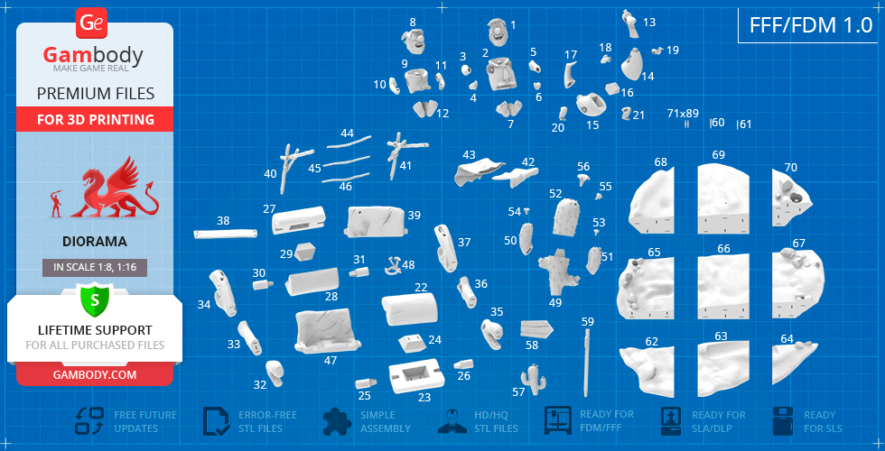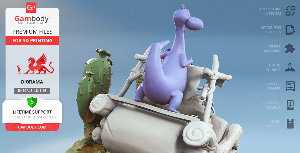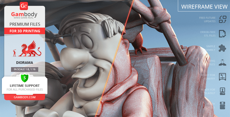 - STL files of high-poly The Flintstones 3D Figurines in Diorama for 3D printing consist of 142 parts