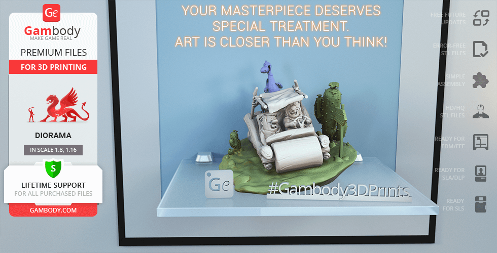 Watch the assembly video for The Flintstones in Diorama 3D Printer Files | Assembly, and explore more tutorials, behind-the-scenes content, 3D printing timelapses, and painting guides on the official Gambody YouTube channel.
