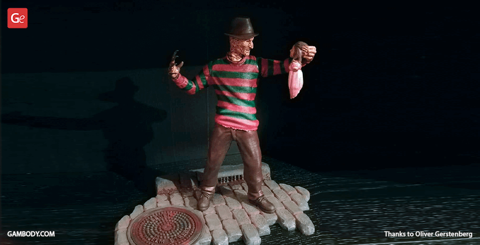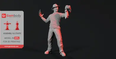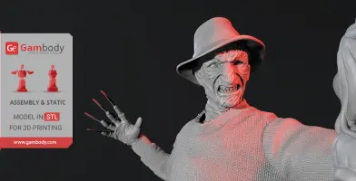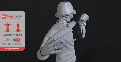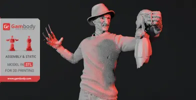 Watch the tutorial on how to assemble the 3D printed Freddy Krueger from the provided 3D print files on Gambody YouTube channel.