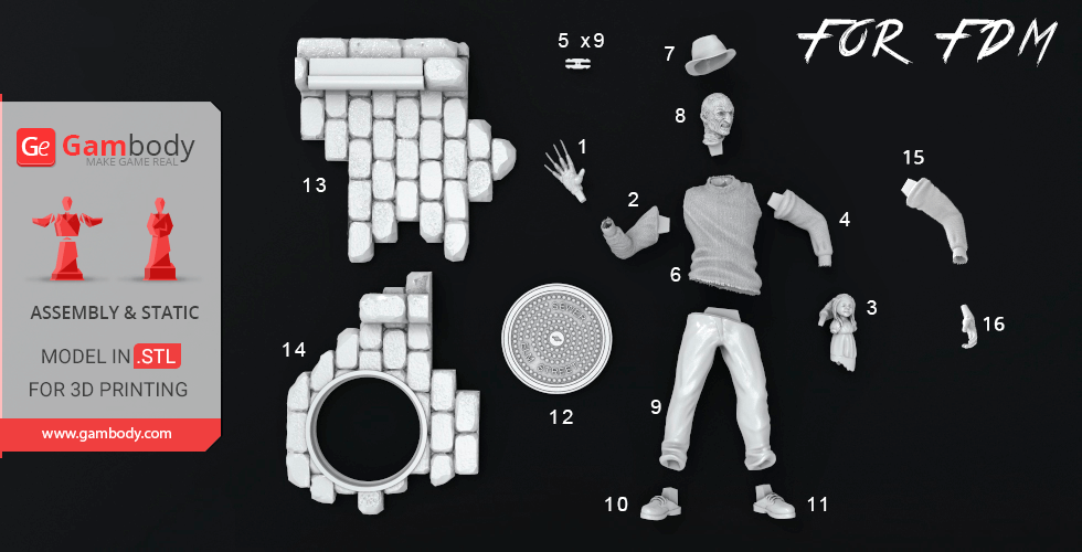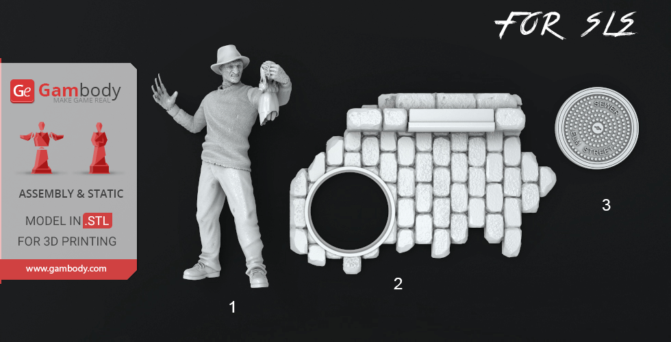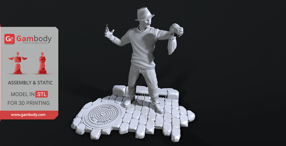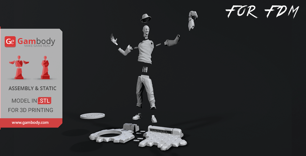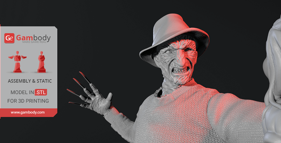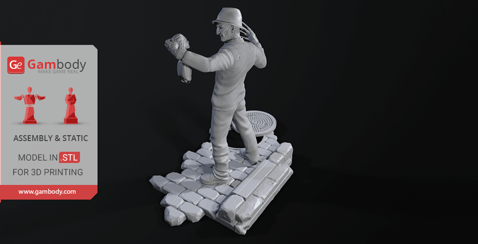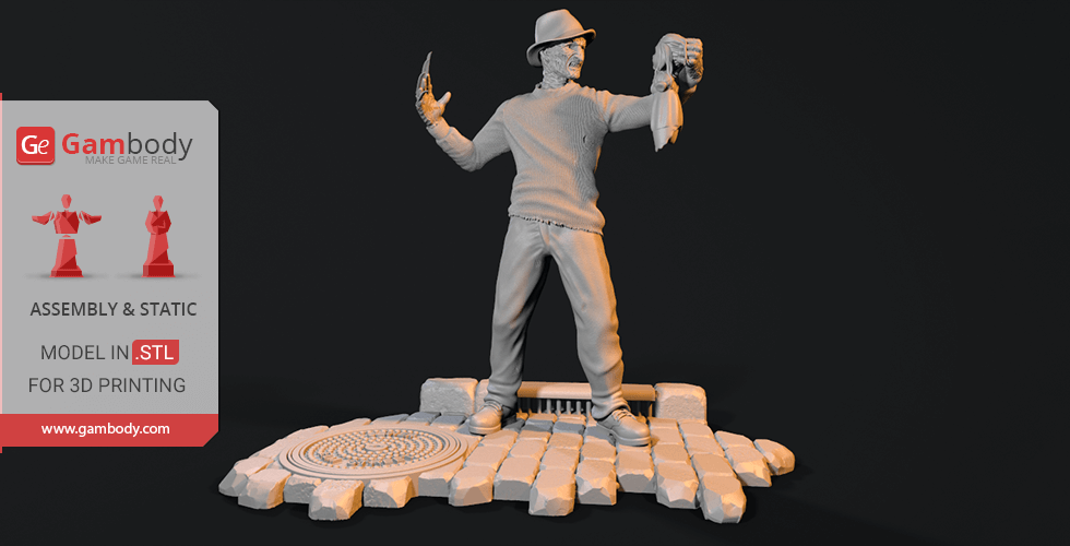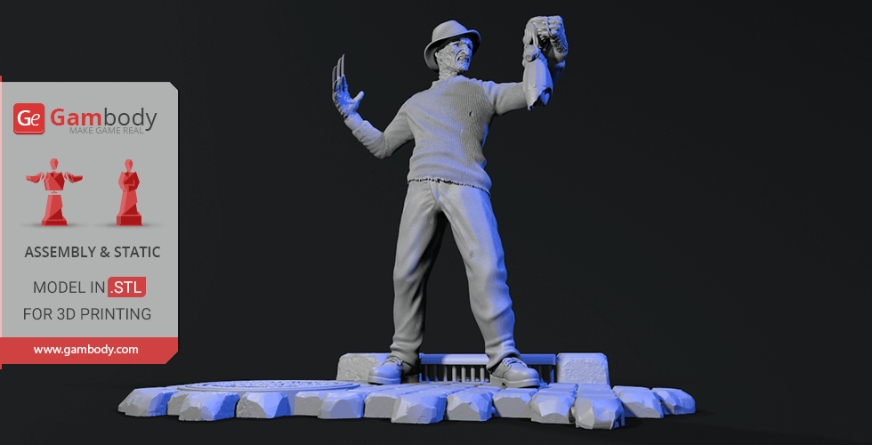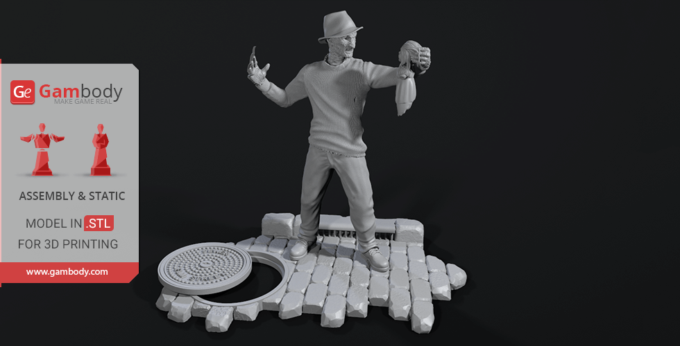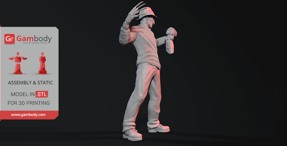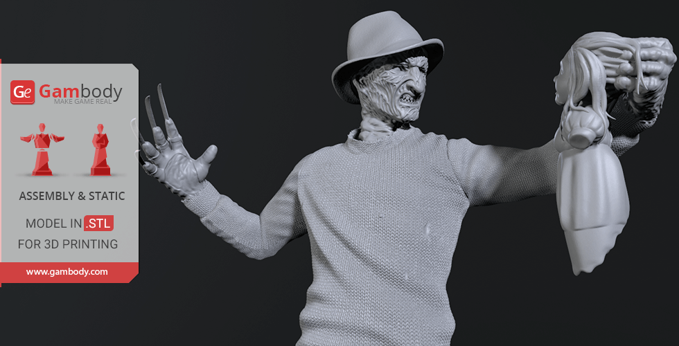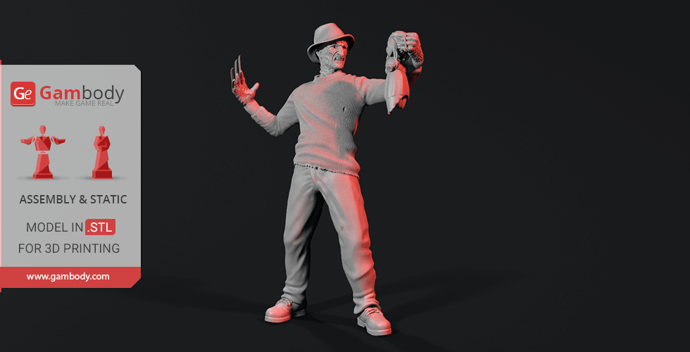 • STL files of high-poly Freddy Krueger model for 3D printing consist of 91 files;