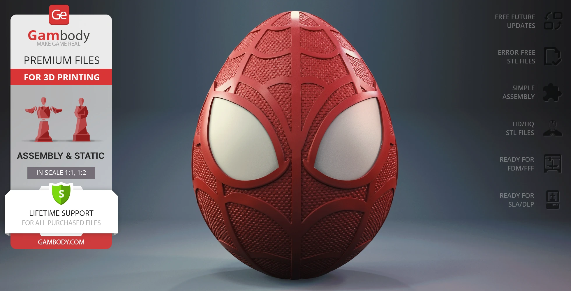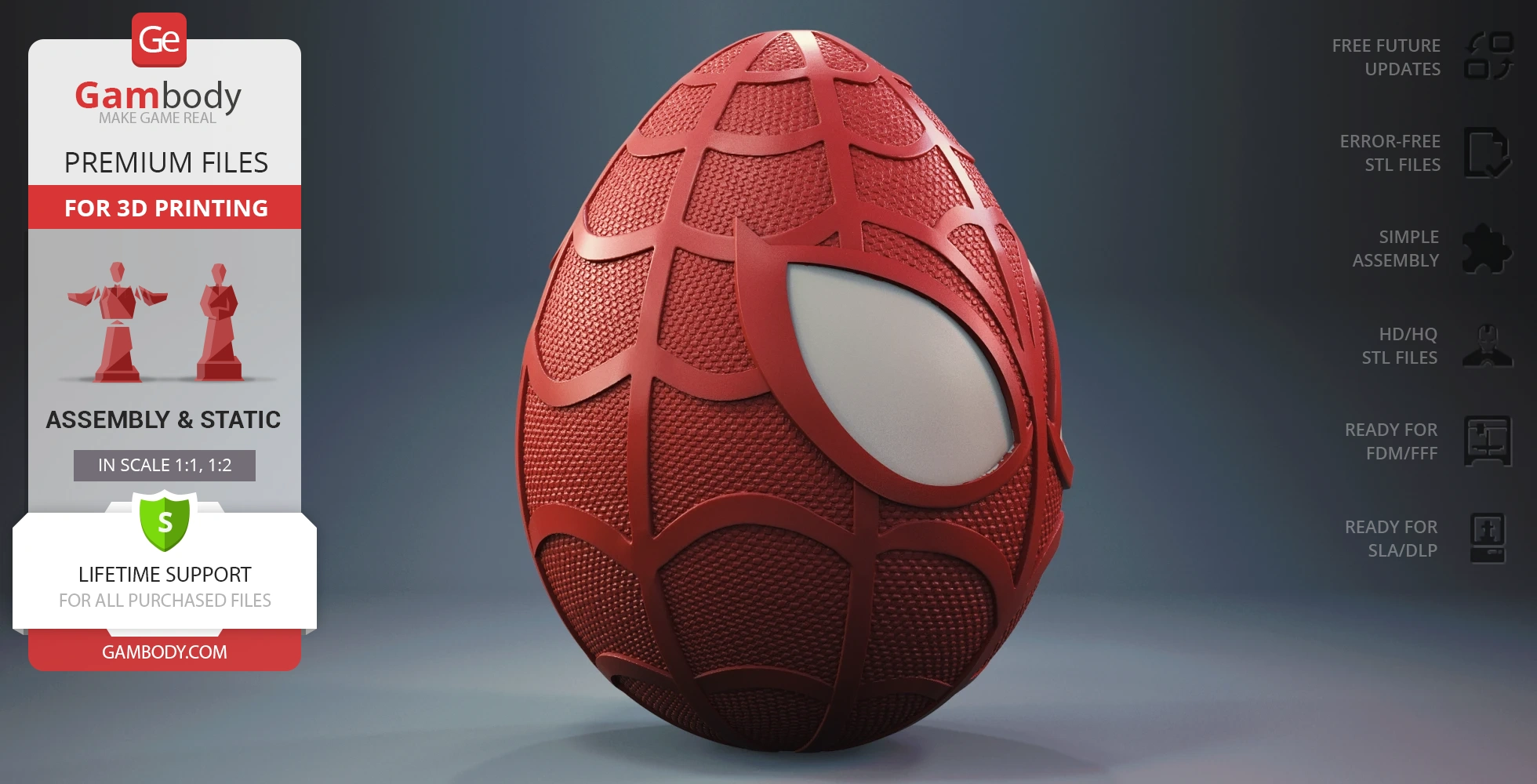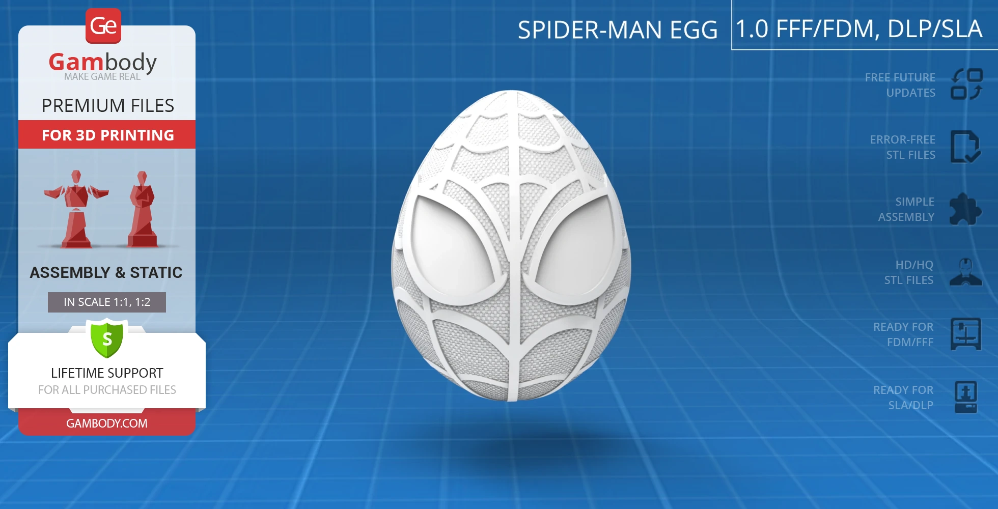 - A printed Spider-Man Egg model is 58 mm tall, 44 mm wide, and 44 mm deep;