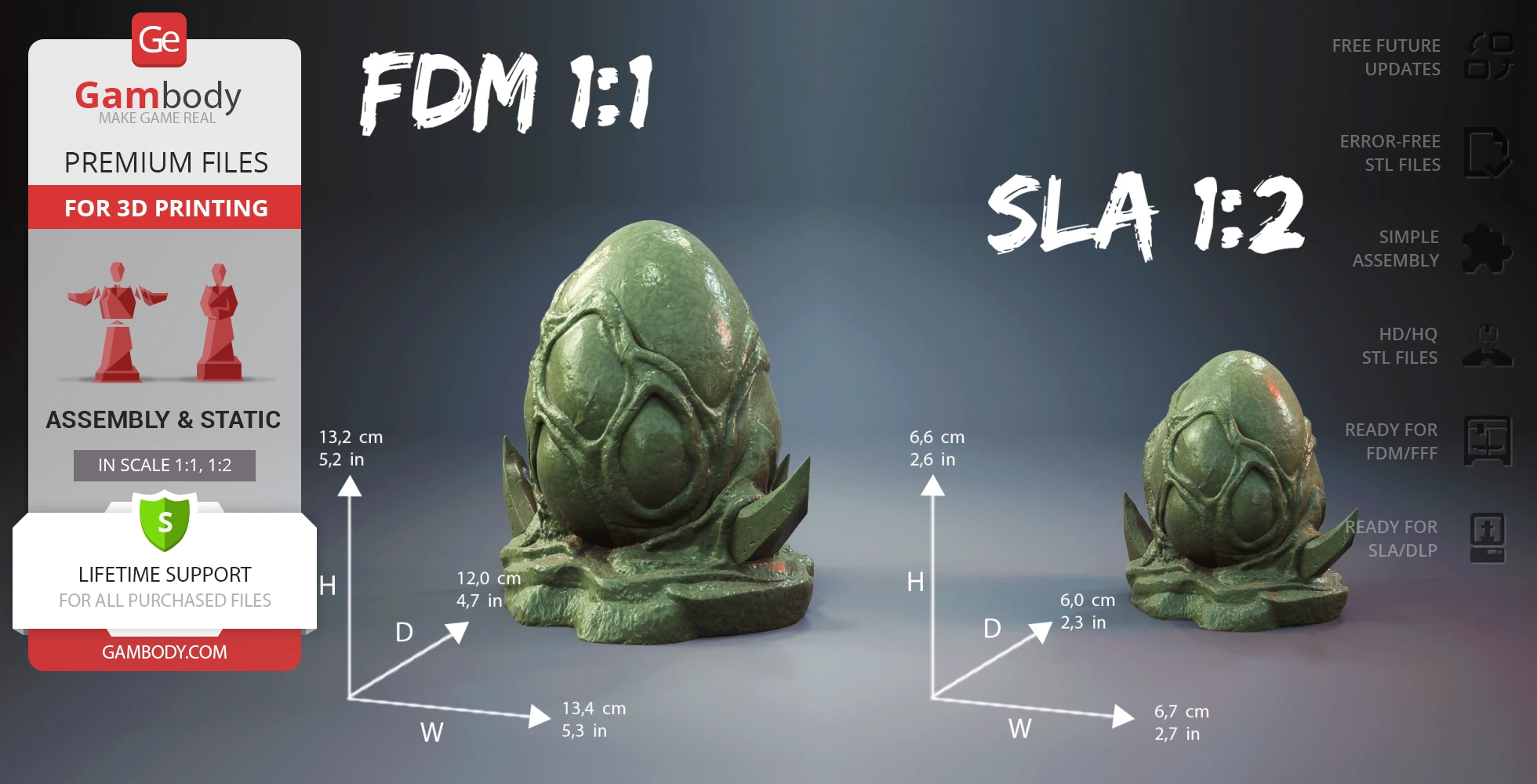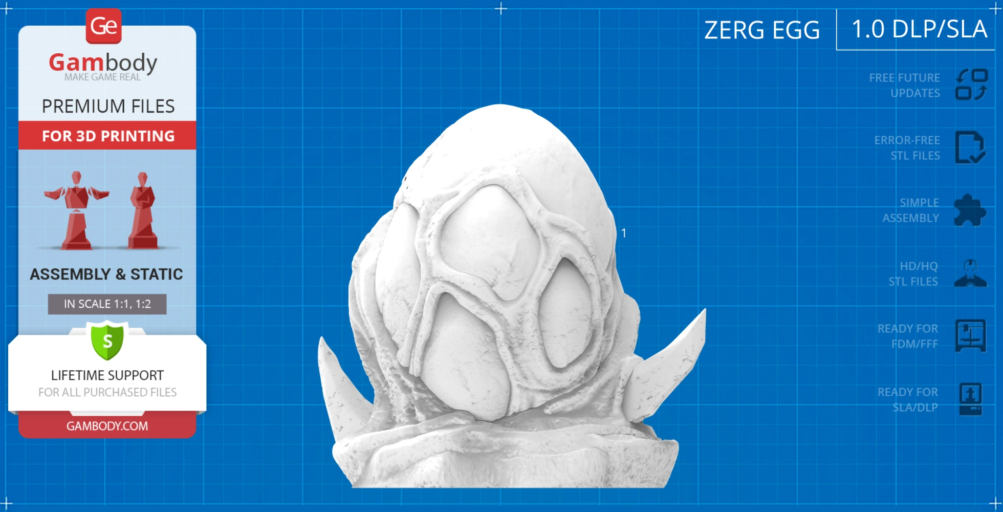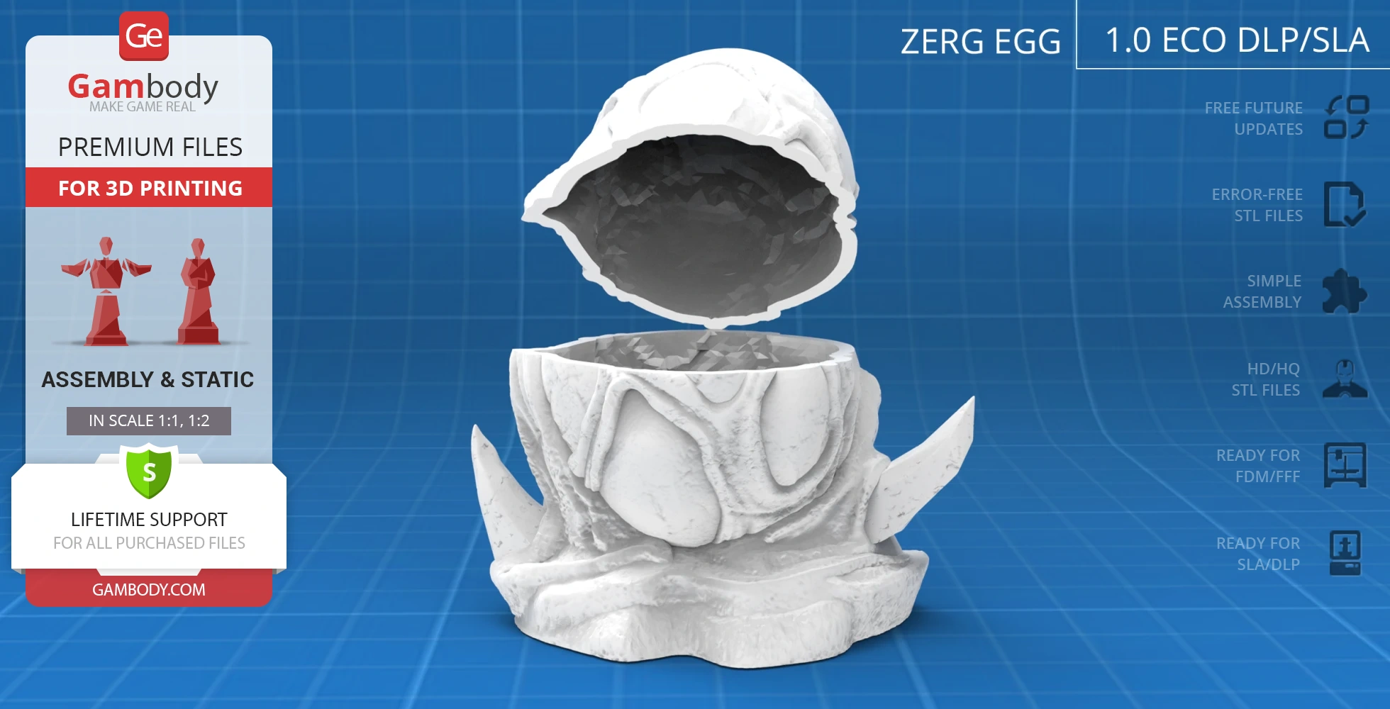 - DLP/SLA Zerg Egg: 66 mm tall, 67 mm wide, 60 mm deep;