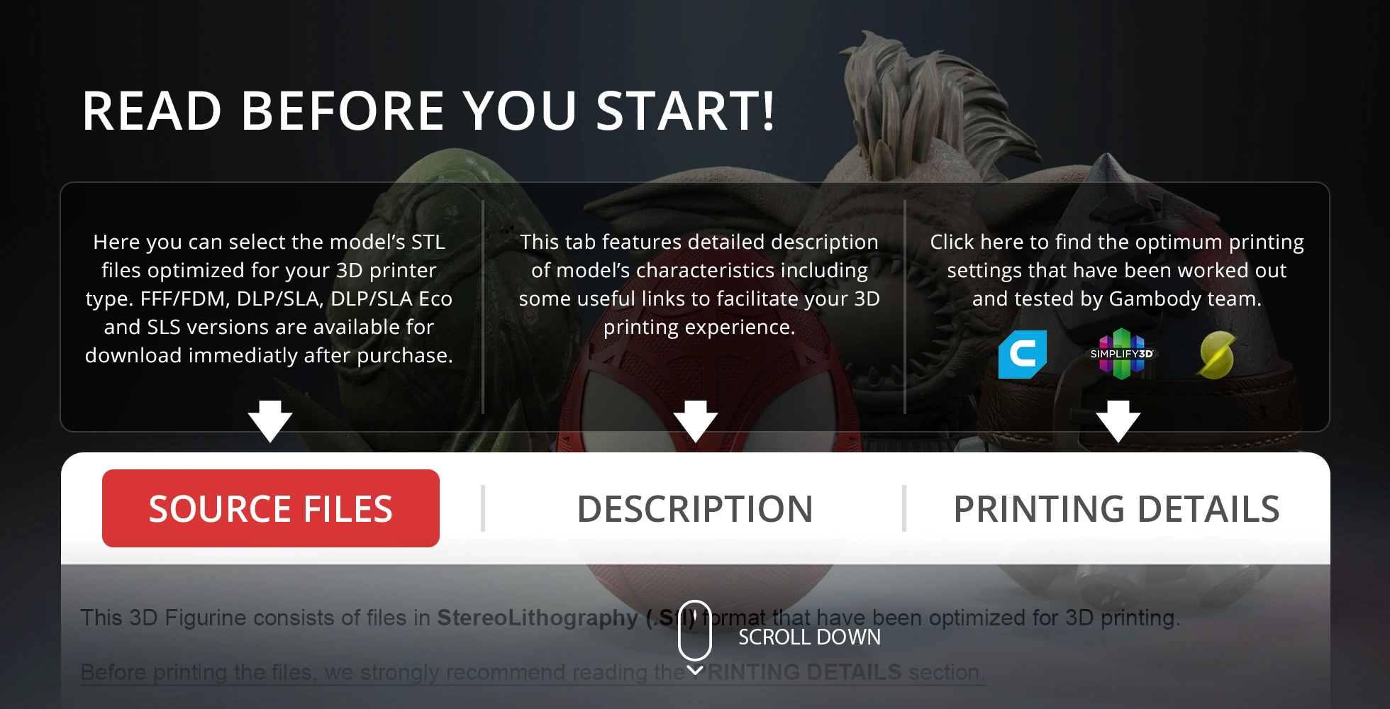 Before printing the files, we strongly recommend reading the PRINTING DETAILS section.