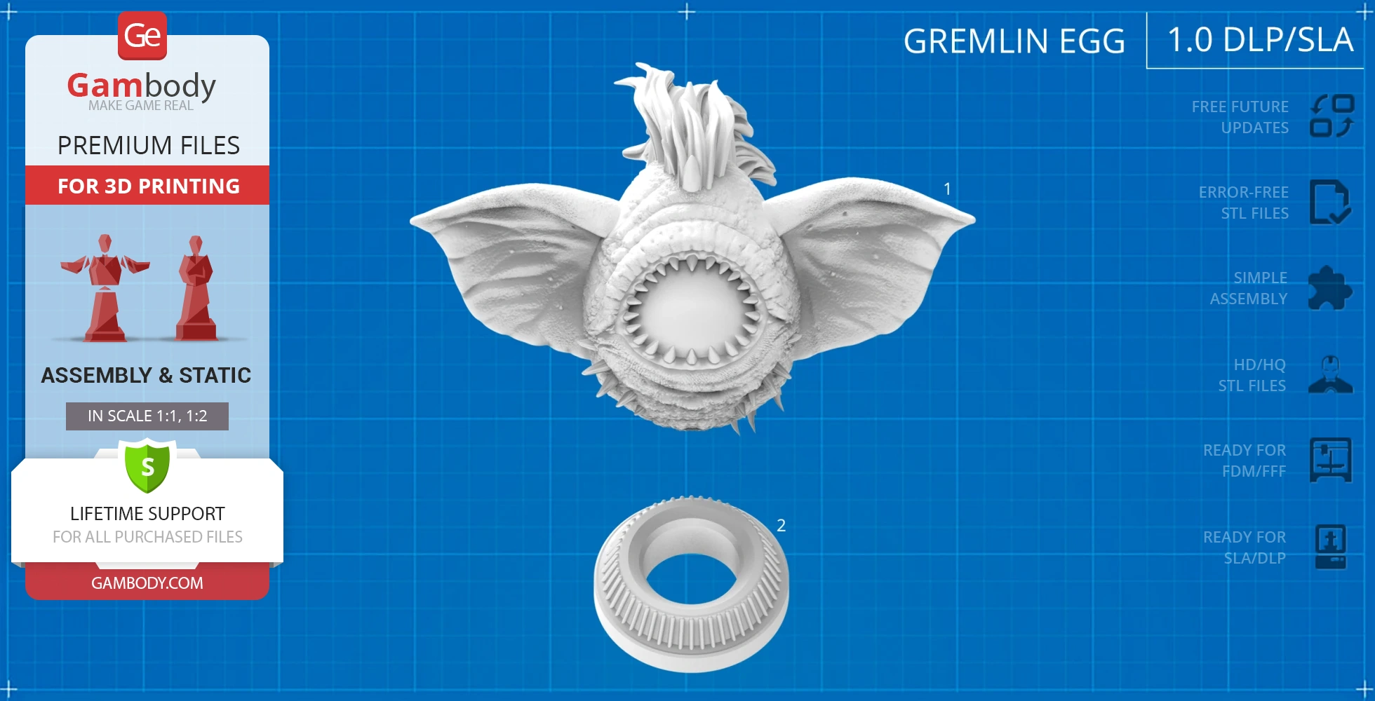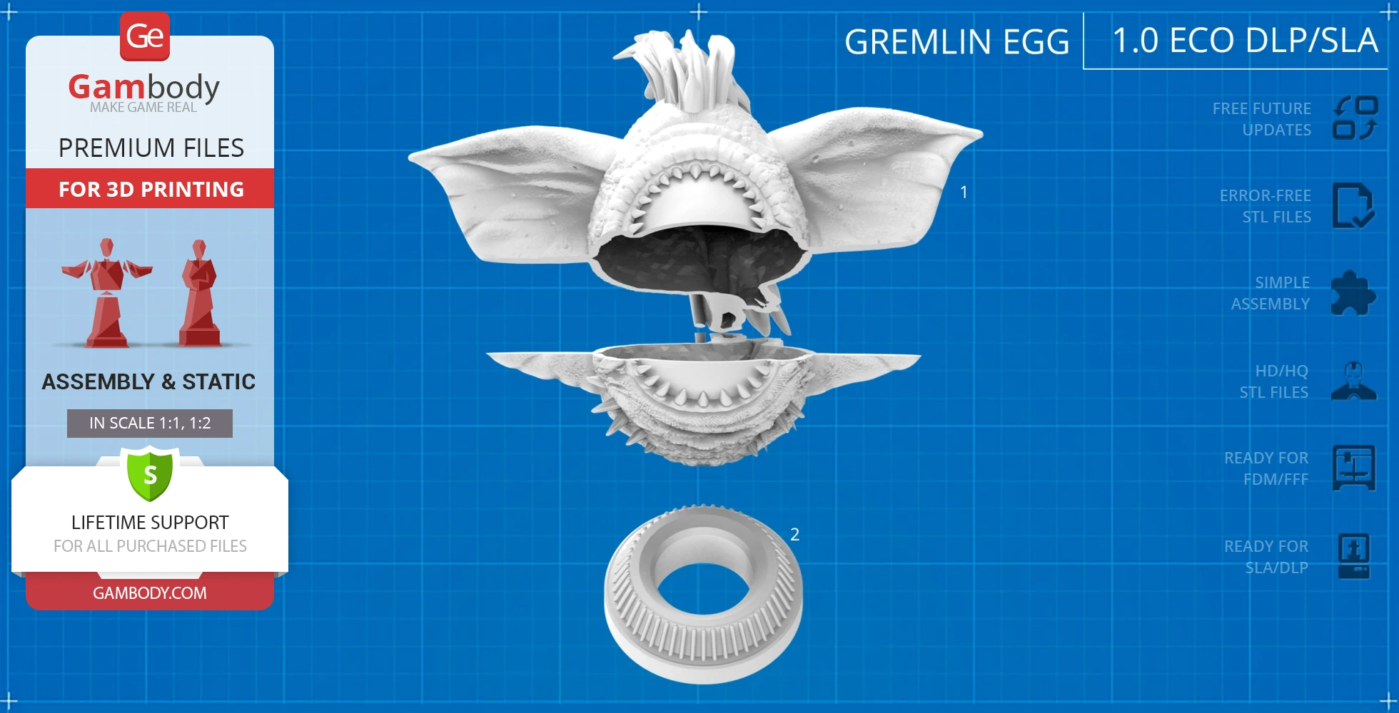 - A printed Gremlin Easter Egg model is 87 mm tall, 118 mm wide, and 80 mm deep;