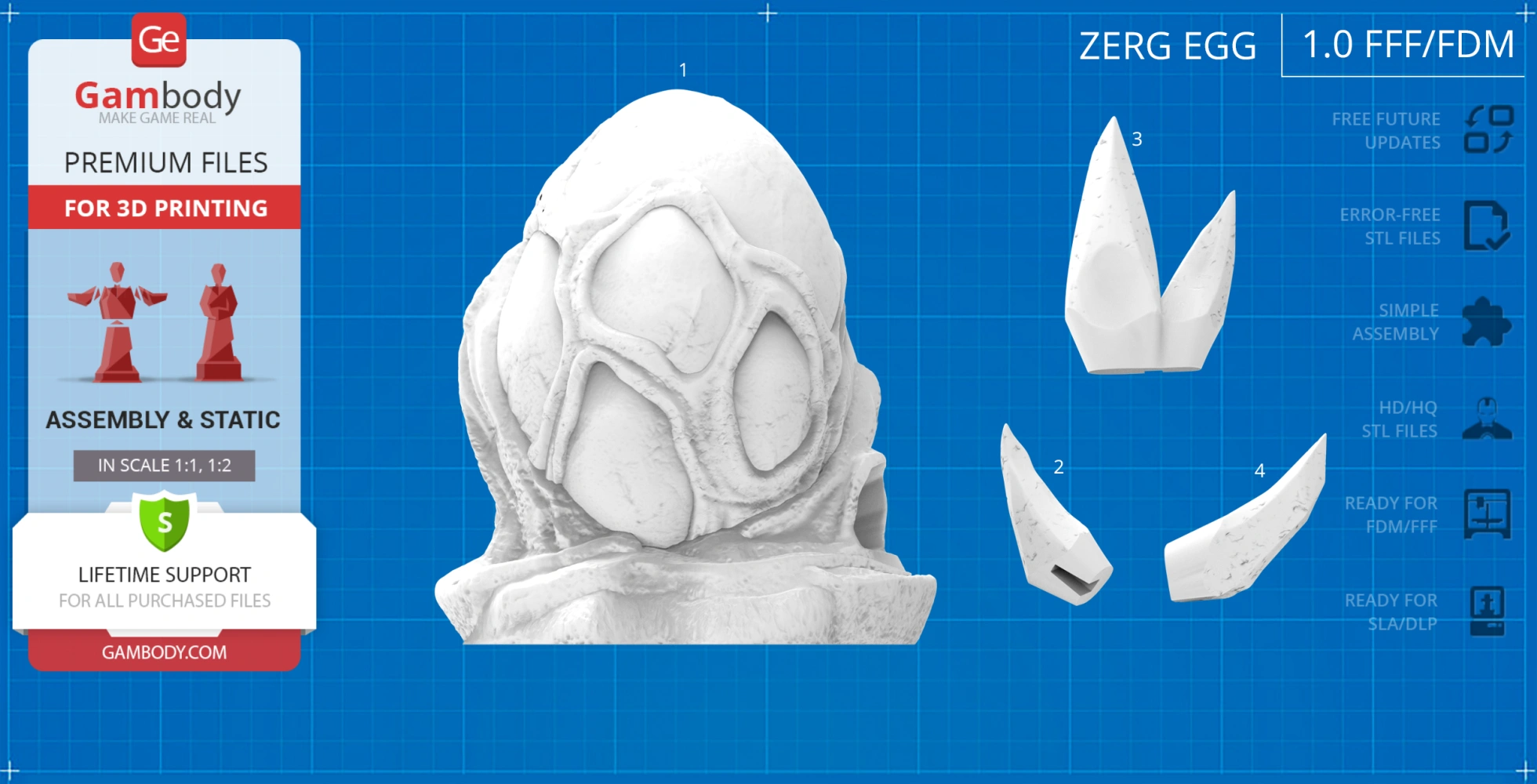 - A printed Zerg Egg model is 132 mm tall, 134 mm wide, and 120 mm deep;