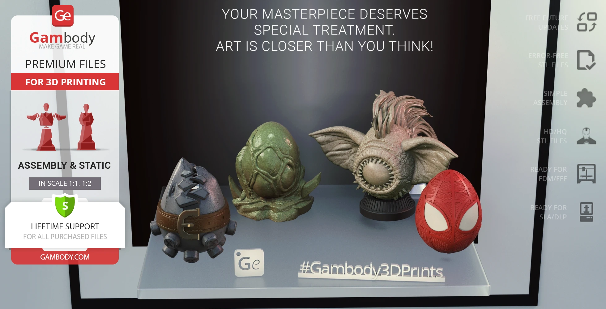 Watch the assembly video for Fun Eggs 3D Printer Files | Assembly, and explore more tutorials, behind-the-scenes content, 3D printing timelapses, and painting guides on the official Gambody YouTube channel.