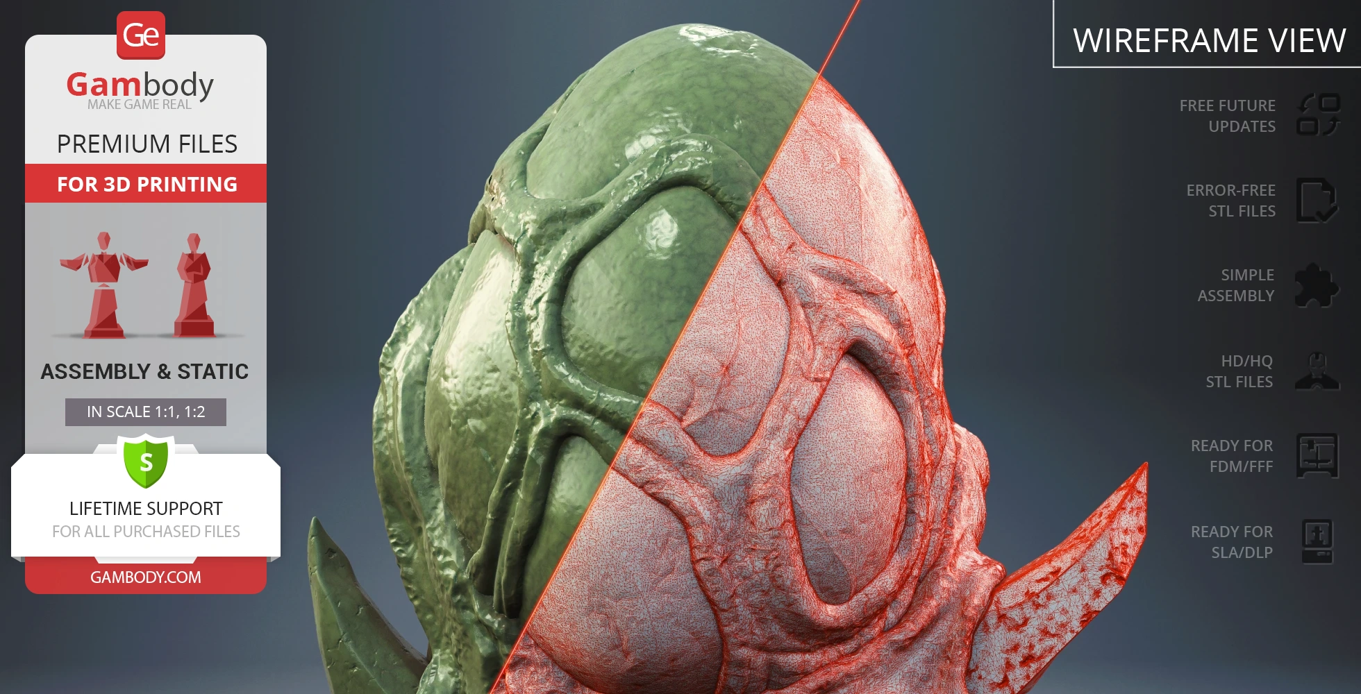 The cutting of the 3D printing design was chosen by our team to minimise the amount of generated support and some of the parts were hollowed out for you to save resin in the Eco version. In order to conceal the places where the assembly parts of the 3D printable model are connected, it was divided into convenient assembly parts.