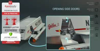 Galileo II Shuttlecraft for 3D printing is an active assembly model and its moderation and adaptation for different types of 3D printers took the Gambody team 40 hours in total.