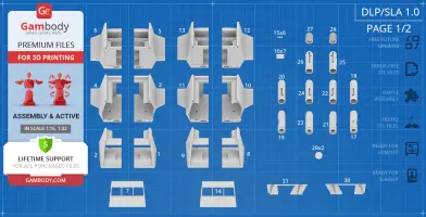 All assembly parts in the FFF/FDM 1.0 version are provided in STL files in recommended positions that were worked out in order to ensure the smoothness of the details’ surfaces after printing and that the 3D printing beginners won't face difficulties when placing the parts on a build plate. When downloading any model's file you will also receive "Assembly Manual" for FFF/FDM 1.0 and DLP/SLA 1.0 versions in PDF format. We highly recommend that you get acquainted with the “Assembly video” and "Assembly Manual" before getting down to the Galileo II Shuttlecraft model.
