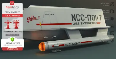 Galileo II Shuttlecraft for 3D printing is an active assembly model and its moderation and adaptation for different types of 3D printers took the Gambody team 40 hours in total.