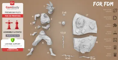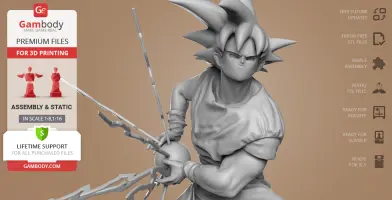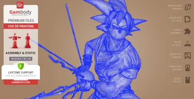 Scale: Goku height is 1780 mm. The scale of this model made 1/8 for FDM version and 1/16 for DLP/SLA/SLS version.