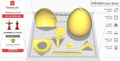 Golden Egg for 3D printing is a static assembly model and its moderation and adaptation for different types of 3D printers took the Gambody team 31 hours in total.