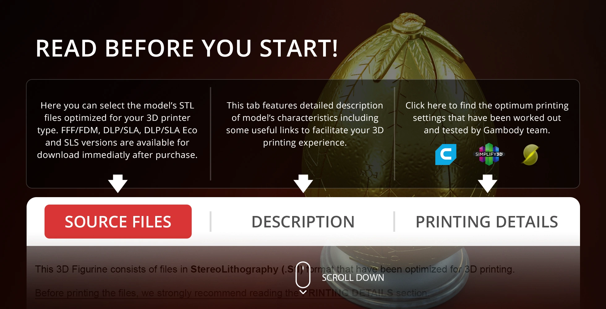 Before printing the files, we strongly recommend reading the PRINTING DETAILS section.
