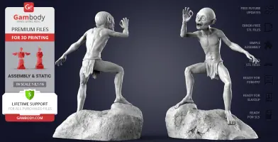 Watch the tutorial on how to assemble the 3D printed Gollum & His Precious Model from the provided 3D print files at Gambody YouTube channel.