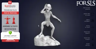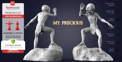 Gollum & His Precious 3D Printer Files | Assembly includes 3 version(s) for the supported 3D printer type(s): FFF/FDM, DLP/SLA, SLS. Files are available for download after purchase.