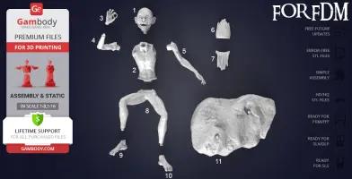 • STL files of high-poly LOTR Gollum 3D printer model consist of 25 parts;