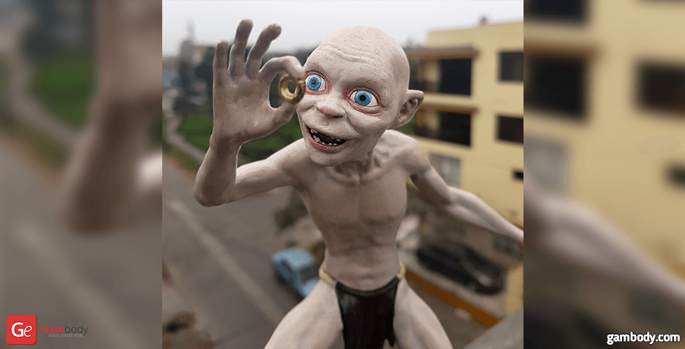 Gollum is one of the key characters in the iconic book by John R. Tolkien. This creature used to be a simple hobbit called Smeagol who lived an ordinary hobbit life. But that was until he found a ring at the lake bottom when fishing with his brother. Smeagol wanted this ring for himself, but his brother refused to give it away, and so Smeagol killed him. He could not part with his precious possession, because the One Ring captures the mind of the one who owns it, which is exactly what happened to Smeagol. He was cast out of his village and disappeared in the Misty Mountains, in the dark of underground caves. The Ring extended his life, and for almost 500 years he lived on an islet of an underground lake in the mountains. The heroes he met spared his life because they believed that he could still play an important role. As a result, when Frodo could not force himself to throw the Ring into the lava to destroy it, Gollum attacked him and bit off his finger with the Ring on it. However, after a careless move he himself fell into the mouth of the volcano with the Ring in his hand and thereby destroyedˇ the dark Lord of the Rings, Sauron, whose spirit was kept in the Ring.