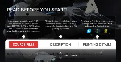 You can get the Gunstar model for 3D printing immediately after the purchase! Just click the green Buy button in the top-right corner of the model’s page. You can pay with PayPal or your credit card.