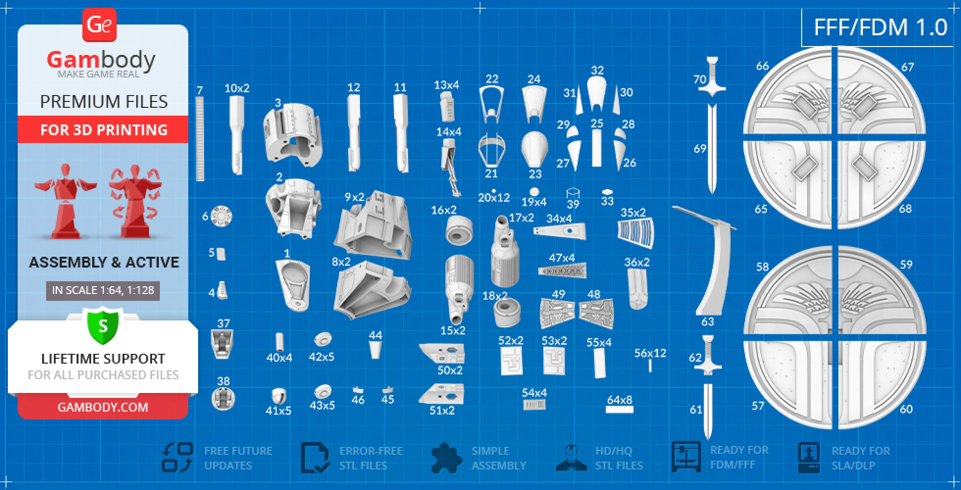• 2 versions of Gunstar STL files for FFF/FDM and DLP/SLA - files for all versions are available for download after the purchase;