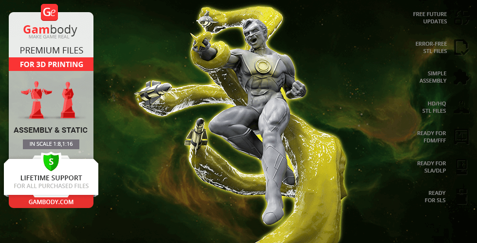 Hal Green Lantern 3D Printing Figurine comes in 4 versions for each 3D printer type (FFF/FDM, DLP/SLA and SLS). Files for each version are available for download after the purchase.