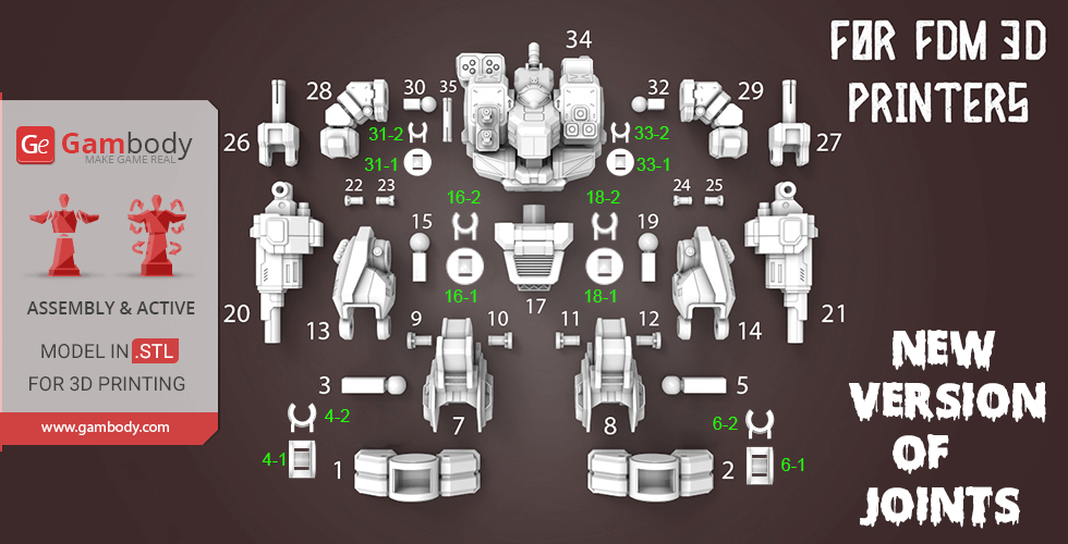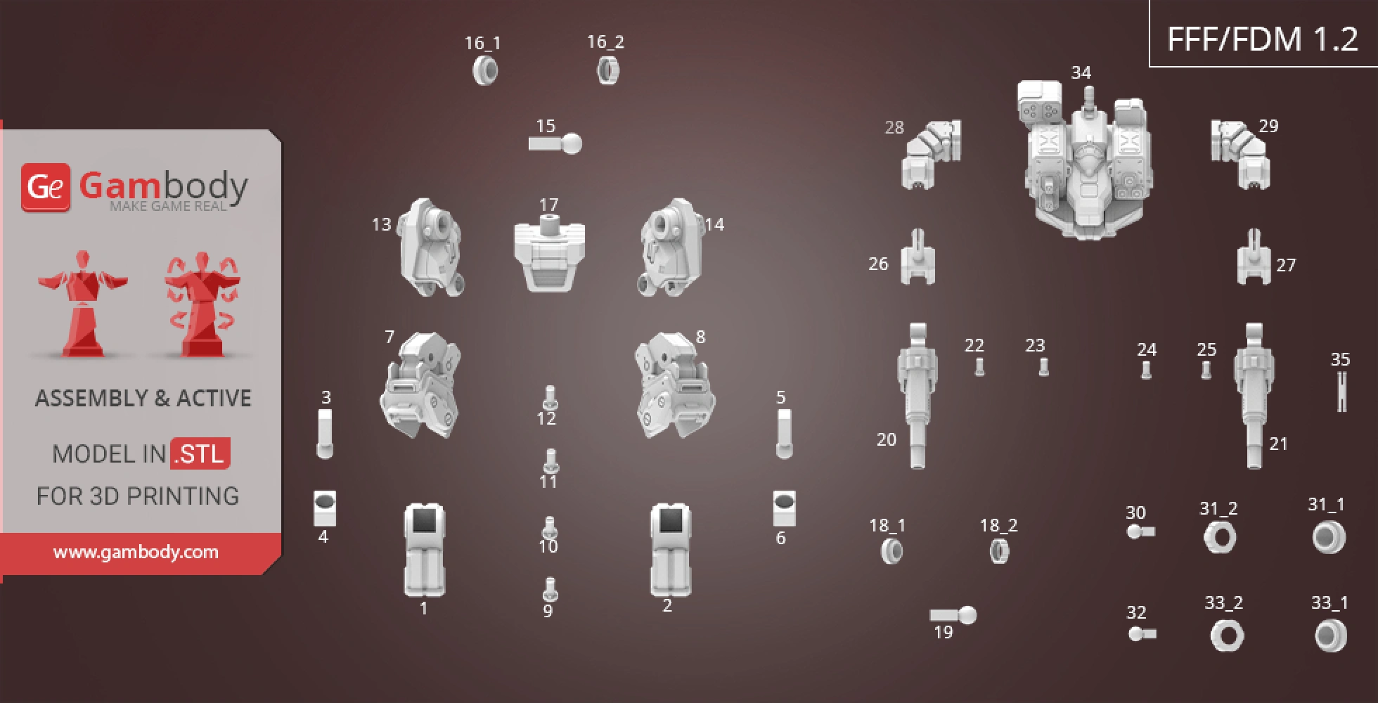 Watch the tutorial on how to assemble the FFF/FDM 1.0 version of Hellbringer MWO 3D Printing Model on Gambody YouTube channel.