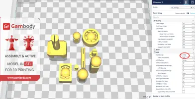 Disclaimer: The following printing settings are a recommendation, not an obligation. The parameters can vary depending on the peculiarities of your 3D printer, the material you use and especially the particular assembly part at hand. Each part that any model comprises often needs preliminary review and you are free to tweak the settings the way you find suitable.