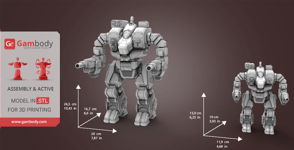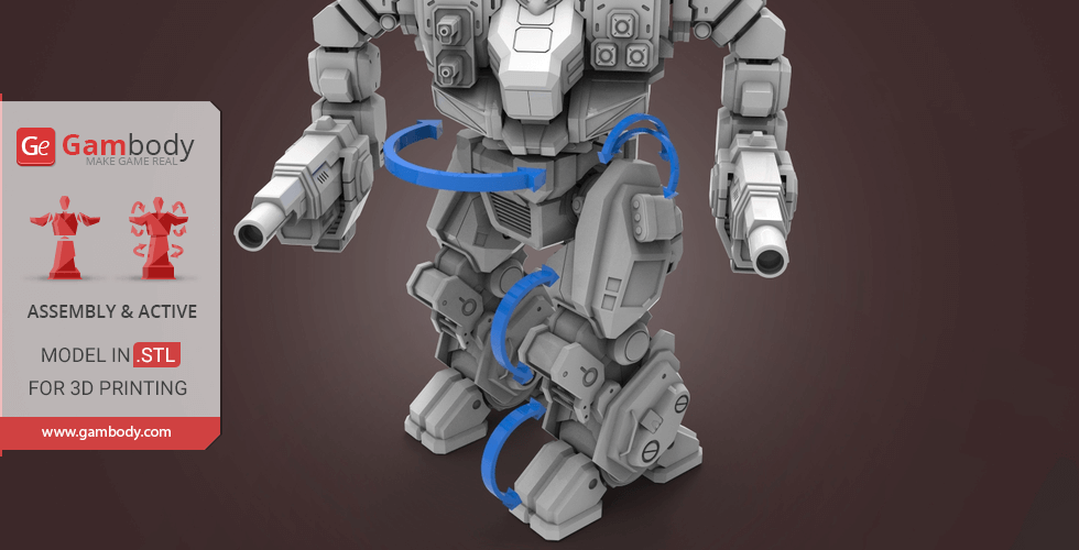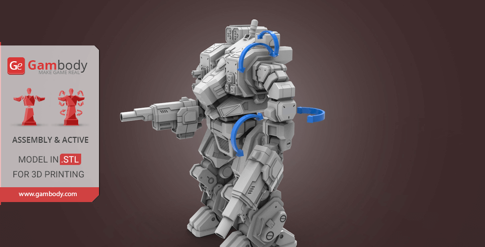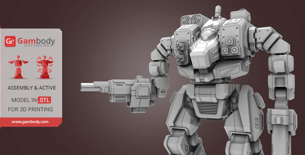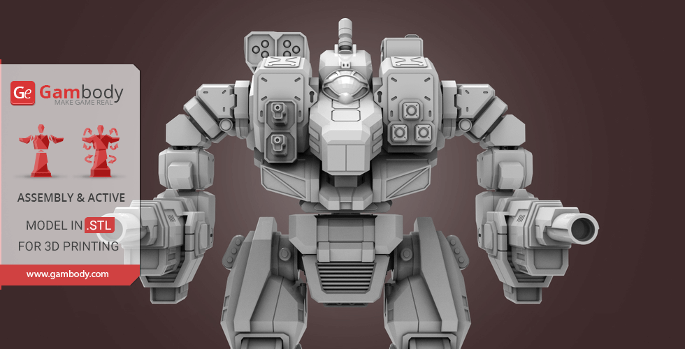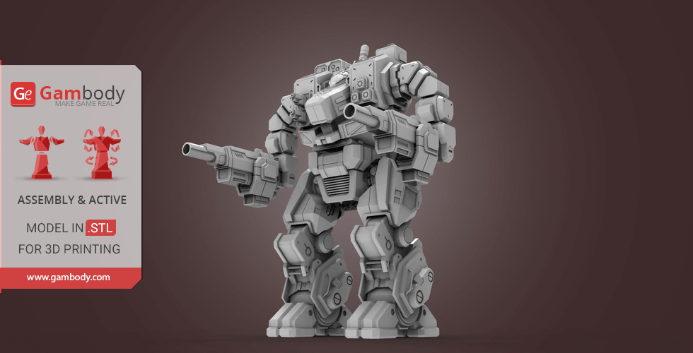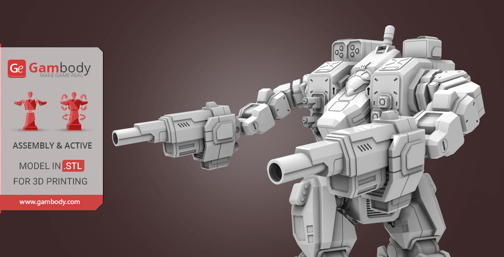 MWO Hellbringer for 3D printing is an active assembly model and its moderation and adaptation for different types of 3D printers took the Gambody team 30 hours in total.